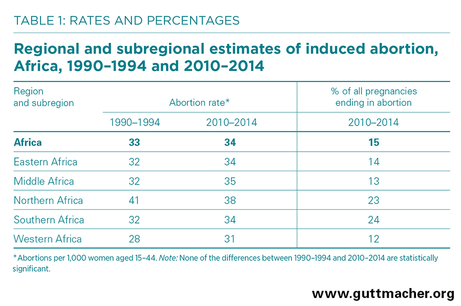 - The proportion of all pregnancies in Africa ending in abortion each year, estimated at 15% in 2010–2014, has changed little since 1990–1994.